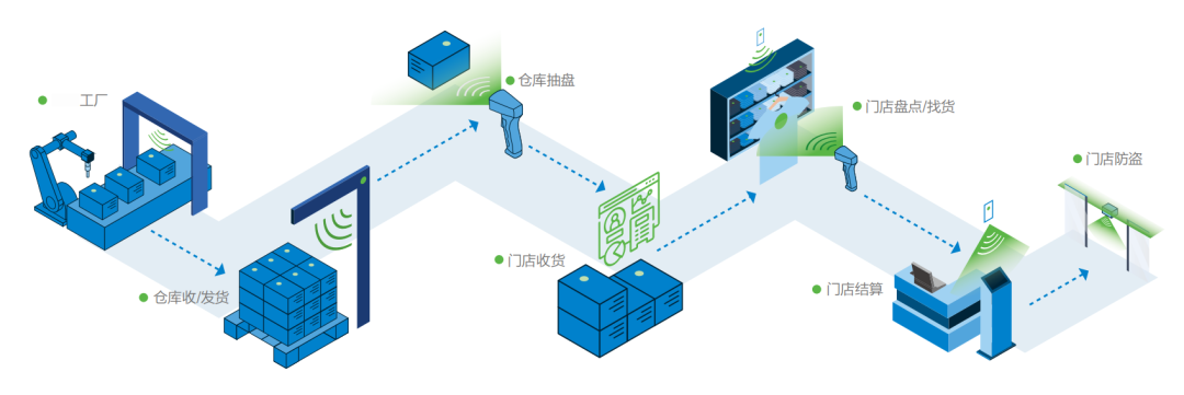 价值: RFID 让商品在不同门店、仓库之间的流转轨迹清晰可见,大幅减少了错配、遗漏,消除了库存管理的“盲区”。