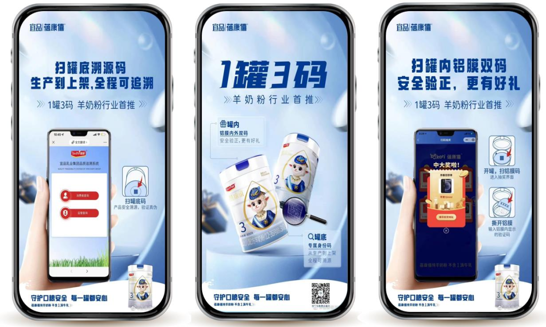 早在此前,CCN中商便开始着手宜品乳业国内市场的数字化服务,助力宜品乳业旗下产品蓓康僖率先在羊奶粉行业中推出内码系统,在旗下奶粉产品罐内加装内码,构建“一罐三码”产品数字化追溯体系。